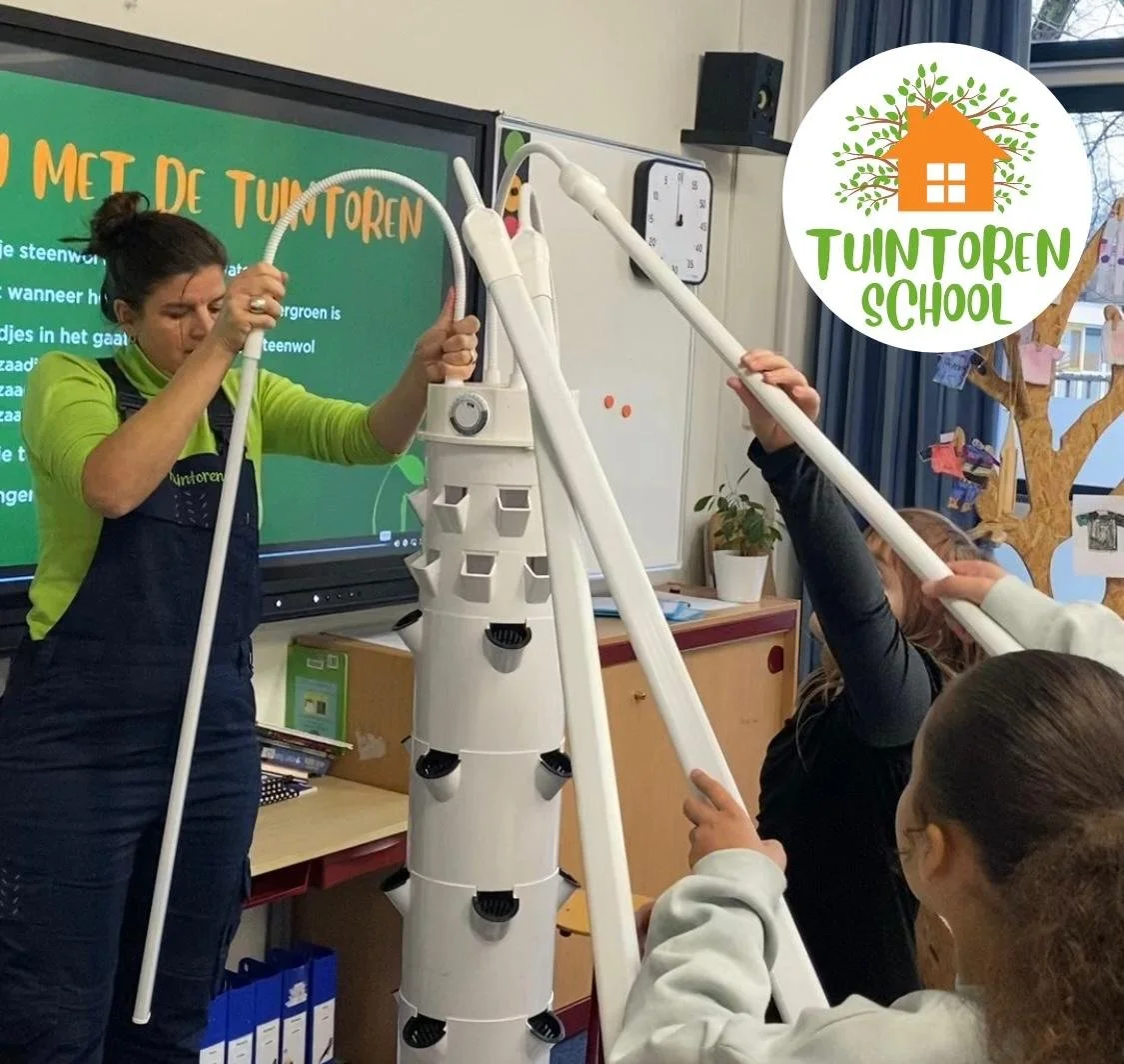 Met de Tuintoren kweken leerlingen hun eigen groenten en kruiden, midden in het klaslokaal. Ze zaaien, verzorgen en oogsten de planten. Ze leren hoe deze eruit zien, wat je ervan kan maken en hoe lekker gezond eten is. Met interactieve, aansprekende video-opdrachten maken de leerlingen spelenderwijs kennis met de magie van verticaal moestuinieren.